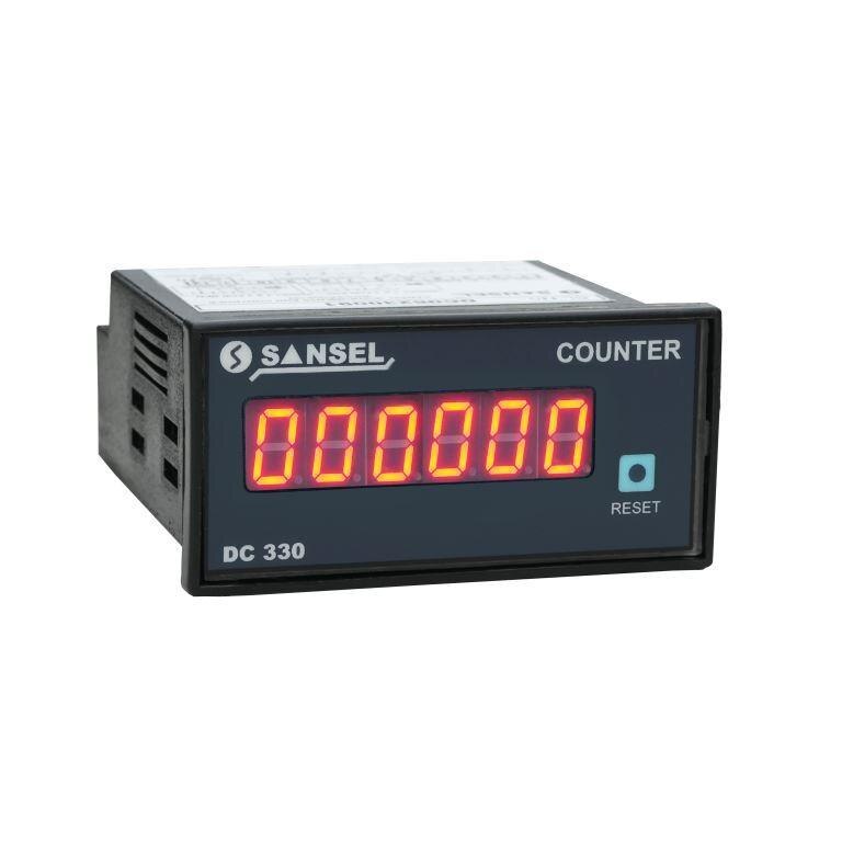Model DC 330 Input 3 - 30V DC from Proximity Sensor, Photoelectric Non Contact Sensor, Encoder, Potential Free Contacts, Limit Switch etc., Input Input Speed 3.5 kHz (Max.) Range 0 - 999999 counts Resolution 1 count /pulse Sensor Supply 12V DC (±10%) 50mA Display 6 Digit 0.5” / 0.3” seven Segment Red Led Working temperature 0 - 50 ºC Power Supply 90 to 270V AC / DC 50Hz Dimension 36 x 72 x 65 mm Weight 200 grams (Approx.)