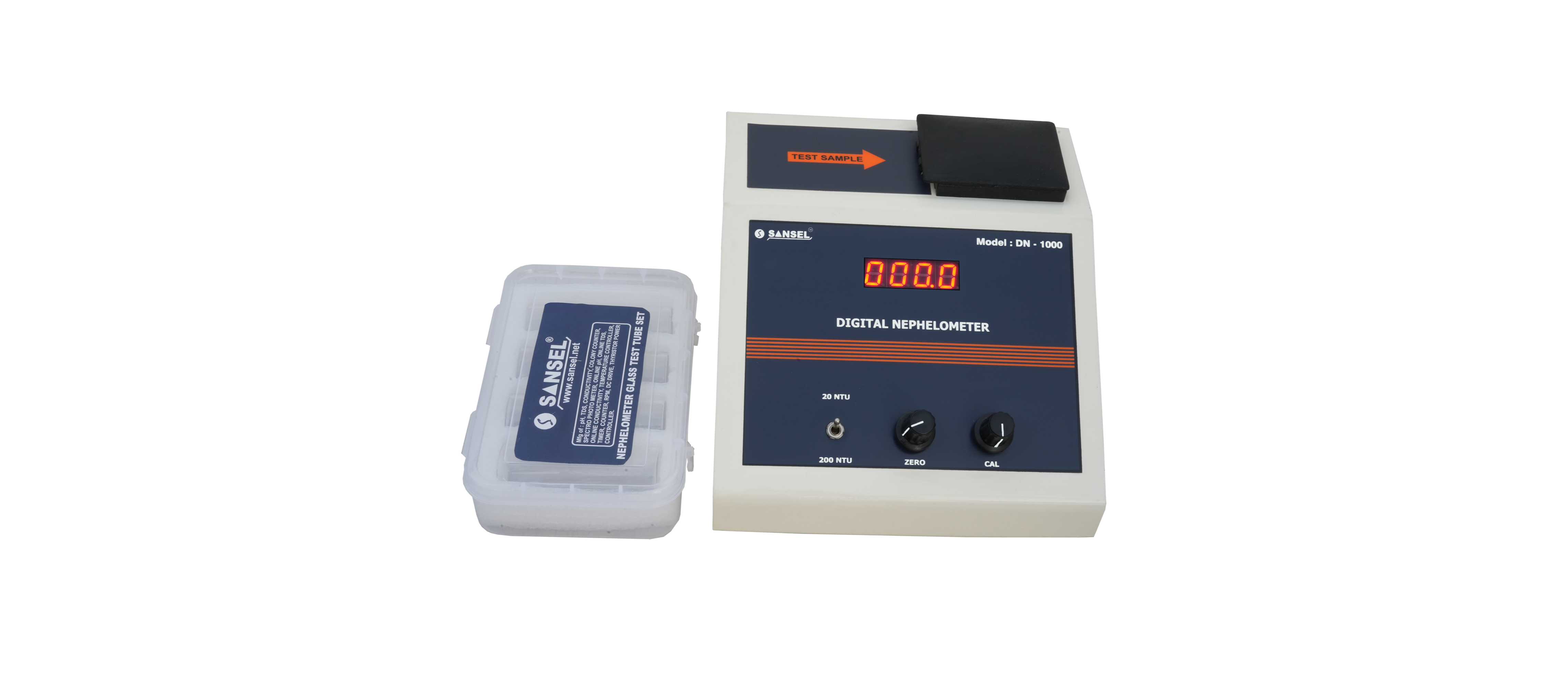 Clarity of water is extremely important in products destined for human consumption. Suspension free water is also considered necessary for industries manufacturing beverage, food products etc.,. Similarly, minimum limits of turbidity are required to be observed in drinking water & sewage disposals. SANSEL Digital Nephelometer Model DN 1000 are ideal instruments for measurement of suspensions. They consist of a light source focused on a test tube containing the sample solution under test. The light, reflected at right angle to the focused light by the suspension in the solution is detected by the photo electric detector, amplified and displayed on a 3½ digit LED display.