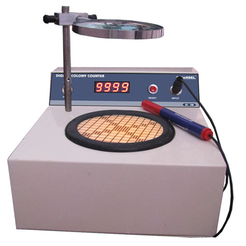 Colony Counter Manufacturer in “SANSEL colony counter is easy to use and allows fatigue-free and safe work-thanks to its problem-free counting mechanism: Marking the colonies on the petri dish with the marker pen activates the counter.