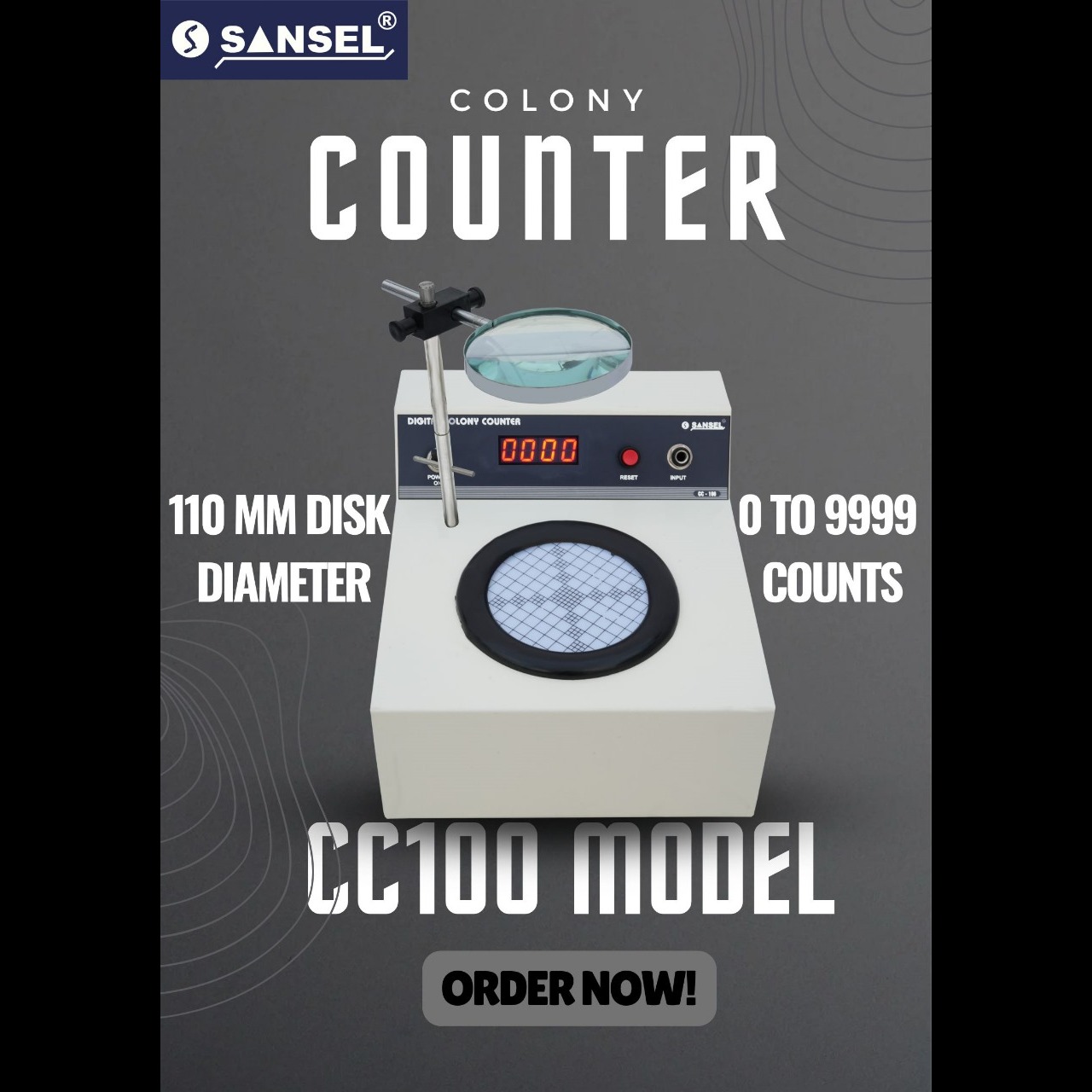 The most time-consuming part of carrying out a microbial count is the actual counting process on petri dishes. Colony counters facilitate this task and as a result are essential in every bacteriological laboratory. Their particular advantages are the easy, rapid and reliable counting of bacterial colonies with very simple handling. SANSEL colony counter Model CC 100 is easy to use and allows fatigue-free and safe work thanks to its problem-free counting mechanism: Marking the colonies on the petri dish with the marker pen activates the counter.