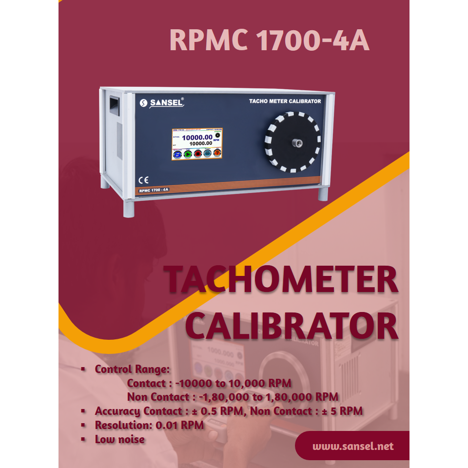 The RPMC 1700 Series is high precision Tachometer calibrator, generates true reference rotation per minute (RPM). This calibrator uses “German technology” with high speed motor, high precision encoder and adoption of a new power full 32 bit CPU in control drive, featuring automated gain tuning function, stability, stable stop, rugged in use and many more. Due to it‟s light weight and rugged Aluminium enclosure, it is suitable for in-house and on-site calibration of contact / non-contact Tachometer, Tacho coil, Tacho generator, RPM indicator, RPM transmitter, Speedo meter, Proximity sensor, Stroboscope, etc,.
