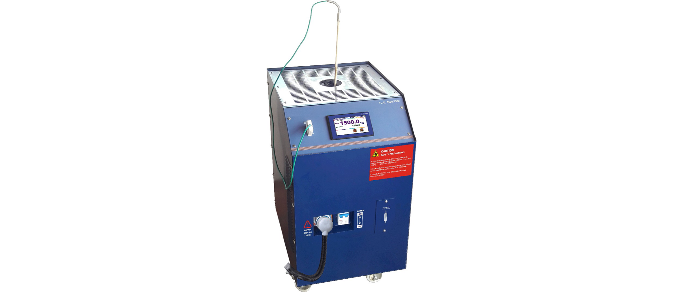 “SANSEL” Series TCAL 1500 / 1500 is a Micro controller Based Precision “Dry Block” Temperature Calibrators Generates True Reference Temperature. The Temperature Controller of the Calibrators Uses a Auto Tune PID Controller Algorithm. This Response Closely Follows the Heating Curve of an Actual Thermal System. Place the Sensor to be Calibrated in the Calibrator. Set the Temperature from 4.3 inch Touch screen . Both True and set Temperature can be Read. When Stabilization Occurs, Simply Read the Temperature and Re- Calibrate the Process System or sensor. TCAL 1500 / 1500 Calibrator may be Used for Calibration of all Type of temperature sensors above 500°C to 1500°C range - K, R, S, B, etc