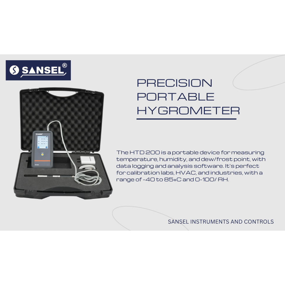 HTD 200 is a Precision handheld relative humidity, Temperature and dew point or frost point Temperature Indicator with data logging facilities to record the live data and optional system interface software is provided to analysis the recorded data in graphical and record format. The HTD 200 is suitable for Reference standard in Calibration laboratories, HVAC applications, manufacturing or storage areas in all Industries with in the Temperature & Humidity range of -40 to 85°C / 0 to 100% RH.