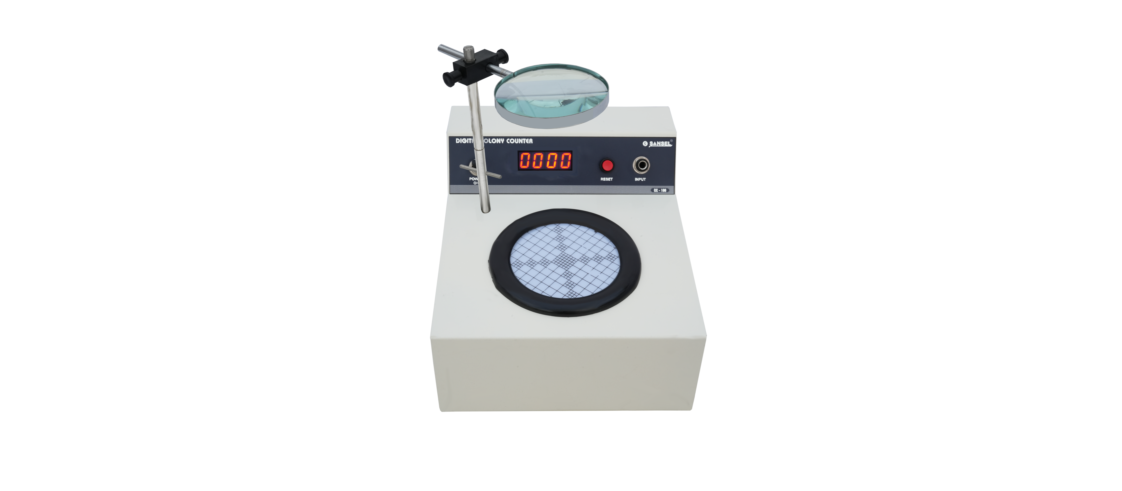 The most time-consuming part of carrying out a microbial count is the actual counting process on petri dishes. Colony counters facilitate this task and as a result are essential in every bacteriological laboratory. Their particular advantages are the easy, rapid and reliable counting of bacterial colonies with very simple handling. SANSEL colony counter Model CC 100 is easy to use and allows fatigue-free and safe work thanks to its problem-free counting mechanism: Marking the colonies on the petri dish with the marker pen activates the counter.