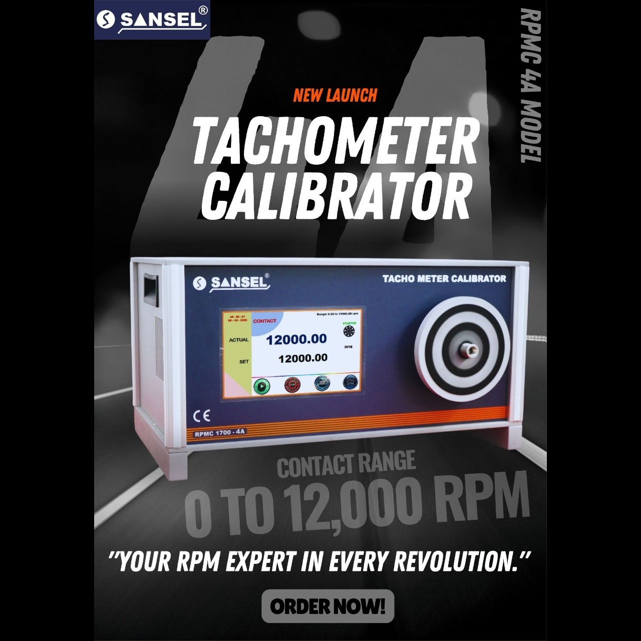 We are well known RPMC 1700-4A Tachometer Calibrator Manufacturers. The RPMC 1700 Series is high precision Tachometer calibrator, generates true reference rotation per minute (RPM). This calibrator uses 'German technology' with high speed motor, high precision encoder and adoption of a new power full 32 bit CPU in control drive, featuring automated gain tuning function, stability, stable stop, rugged in use and many more.