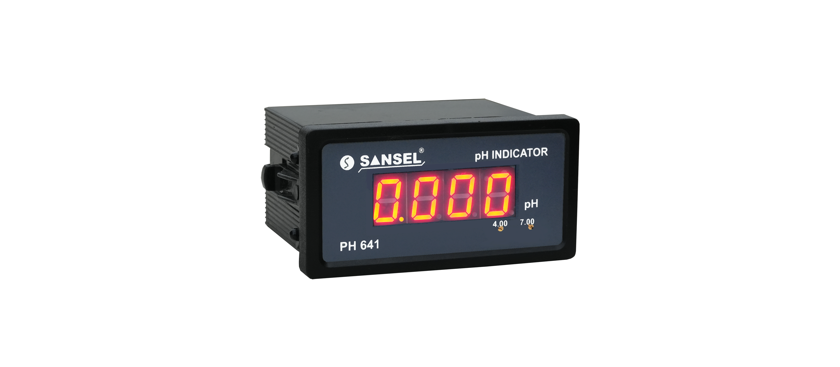 pH is the potential measure of hydrogen ion concentration in the solution, expressing the acidity or alkalinity of solution on a Logarithmic scale on which 7 is neutral, lower values are more acid and higher values are more alkaline. SANSEL make online ph 641 indicator is a precise, rugged and weather proof instrument carefully designed for the most accurate measurement of pH/ ORP in all industries. This instrument is a panel mountable with a compact standard size of 48 x 96 x 65mm with front end pot meter type easy adjustable 4pH & 7pH buffer calibration, zero & SPAN adjustment for ORP. This instrument operates from 90V to 270V AC / DC ,50Hz.