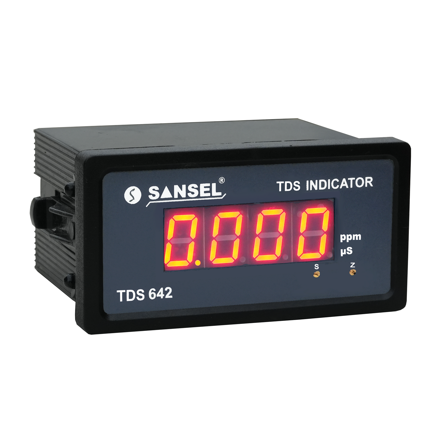 SANSEL make TDS 642 indicator is extremely useful for fast and accurate determination of total dissolved solids or conductivity in a liquid. The use of solid state technology and IC circuitry makes this instrument versatile and reliable. The factory set fixed range is available. The instrument is ideal for testing of natural water, drinking water, waste water, brine solution and sea water, etc.,.
