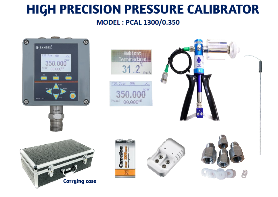 Exact Pressure Measurement and Monitoring are Must in Applications Crucial to Operational Safety of Machinery and Industrial Installations. Regular Inspection of the Pressure gauges / sensor / transmitters / indicators Used in these Applications is Absolutely Essential for Economic and Technical - Safety Reasons and is Already Prescribed as Obligatory in Many Sectors. “SANSEL” PCAL 1300 / 1 is a Micro controller based precision pressure calibrators generates true reference pressure. Connect the gauge to be calibrated in the calibrator. Set the pressure using respective pump when stabilization.
