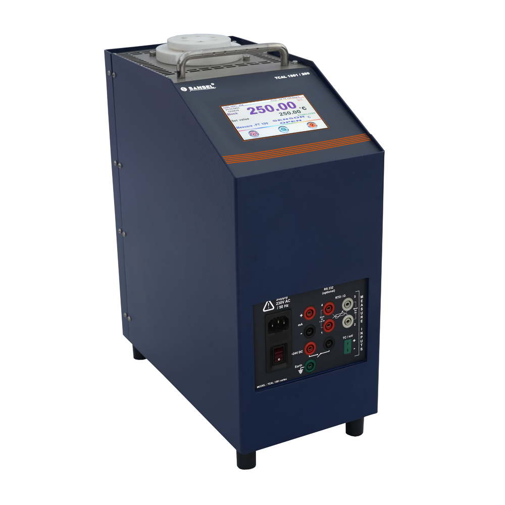 SANSEL Model TCAL 1501/250 of Liquid Temperature calibration bath range from Amb. +5 to 250 °C are high precision, better resolution, stability, fast in heating and cooling. Large volume testing area 60mm Dia x 120mm Depth to calibrate more number of Thermometer at a time with better uniformity using Magnetized stirring. These models can meet any calibration requirement in laboratories or in on site applications. This models are inbuilt measuring facility of the Thermocouples, RTD, Resistance, millivolt & milliamps to directly read the signals from most of the temperature sensors, indicator with sensor and Transmitter.