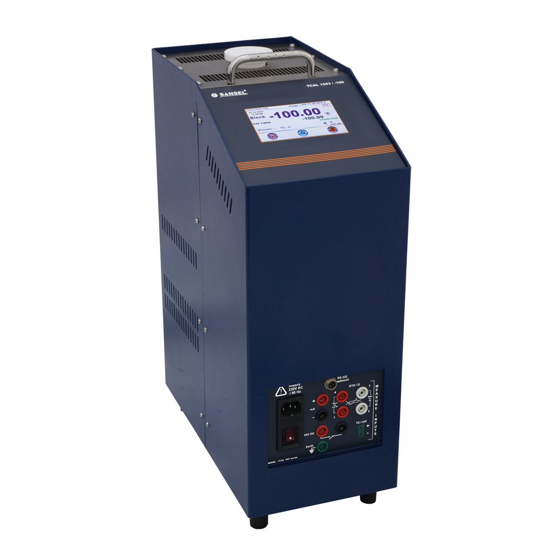 Sansel model TCAL 1503/-100 Dry Block Temperature Calibrator incorporate the best cooling (FPSC) Technology. This dry well has an advantage of wide temperature range from -100 to 40°C, CFC Free, high efficiency, Fast cooling & Heating, Energy saving & Fluid free. Hence it is a great alternative to Fluidized bath and best suitable for clean room environment.